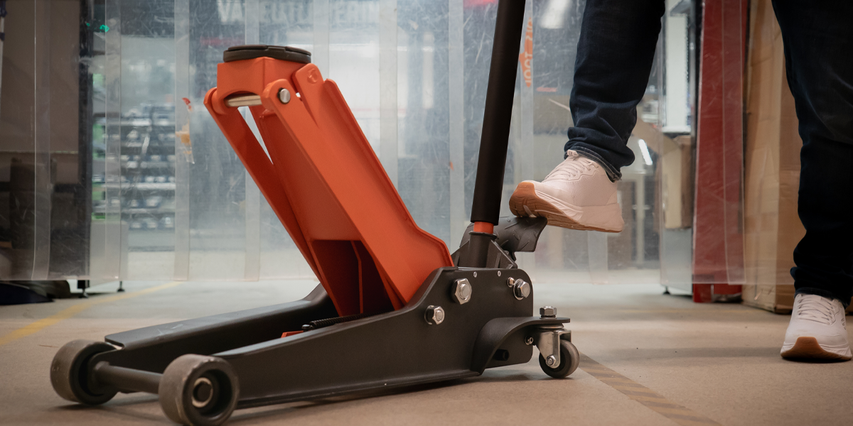 Med en fotpumpe løfter du jekken raskere opp til kontaktpunktet
